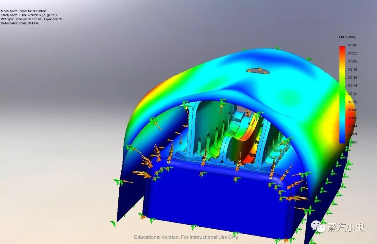 蒸汽小虫的本篇文章临时不对蒸汽小火车模型锅炉的焊接制作工艺技法进行讲解,关于锅炉制作技法的主题待到蒸汽小虫有时间时候再作说明。本文的重点是锅炉的测试技巧,使用注意事项和保养技法等等。 需要特别说明的是:包括锅炉在内的压力容器属于国家法定特种设备,必须有资质证明才能进行商业化生产和销售,使用和维护、维修压力锅炉也必须由专业人员进行。作为蒸汽小火车的模型DIY需要,本文内容仅供学习参考。 蒸汽小虫先啰嗦几句锅炉制作:为了安全,蒸汽小火车锅炉内部的图纸结构设计,不要轻易更改,尤其是锅炉火箱与炉体之间的桥接加固钉,这个在对火箱加热时候的热变形应力配置非常关键,不是多余的!!!如果制作时候省略这些细节,可能会造成锅炉使用的安全性问题,切记切记!学究气重一些的模友们可以看下图理解。 上图是锅炉火箱附近在加热时候的热变形应力场的模拟结果 此外,锅炉的制作过程可能要有些金属板要翻边(见下图),这个也不用想当然的省略了,翻边对于焊接的靠谱性是非常必要和关键的。这些工艺方法和要点都经历过前人非常严格的实验测试和优化,有着完善的理论规范,DIY玩家在掌握锅炉设计理论之前切莫为了省材省力自行改变图纸要求,对焊接的技法和焊条要求也要格外严格。 上图为锅炉制作需要的的翻边板 总的说来,鉴于蒸汽动力小火车模型的锅炉结构特点和安全性能要求,锅炉模型的DIY制作一般是蒸汽小火车发烧友们遇到的一个难点,蒸汽小虫会在之后的文章里面做重点说明。 回到今天开篇的主题,是锅炉的测试和维护问题,假如你已经有一台焊接完成的锅炉,怎么进行测试呢?在开炉点火之前,先进行常温的水压测试吧!这个测试简单,可靠,容易上手。 上图是水压测试的示意图 首先玩家需要一个手动压水泵(这个手动压水泵的结构和DIY制作工艺蒸汽小虫会在近期给出),在将锅炉灌满水后,将锅炉密封开始往锅炉里面压水,一直观察压力表读数,常见的加压参考是锅炉工作压力的3-4倍。比如你所用的蒸汽小火车锅炉工作压力是6公斤,可以用这个方法往里压入常温水,一直到24公斤压力的水压为止。此后需要的是:静止24小时观察!如果锅炉的焊接存在明显的漏缝或微孔,那么一定有漏水的地方,锅炉内水压也没法维持太久 上图是玩具自制的蒸汽动力小火车锅炉在进行水压测试 水压测试完成后,必须放出一部分水才能开炉点火。水压测试使用的手泵是蒸汽动力小火车的必备设置(即使你很少用手泵为锅炉注水,也需要这个设置来时常性地检测锅炉耐受性)。这个小手泵一般藏在小火车的水箱里,有一根可拆卸的长把手来进行注水操作。 此外,蒸汽动力小火车的锅炉使用务必注意以下安全事项: