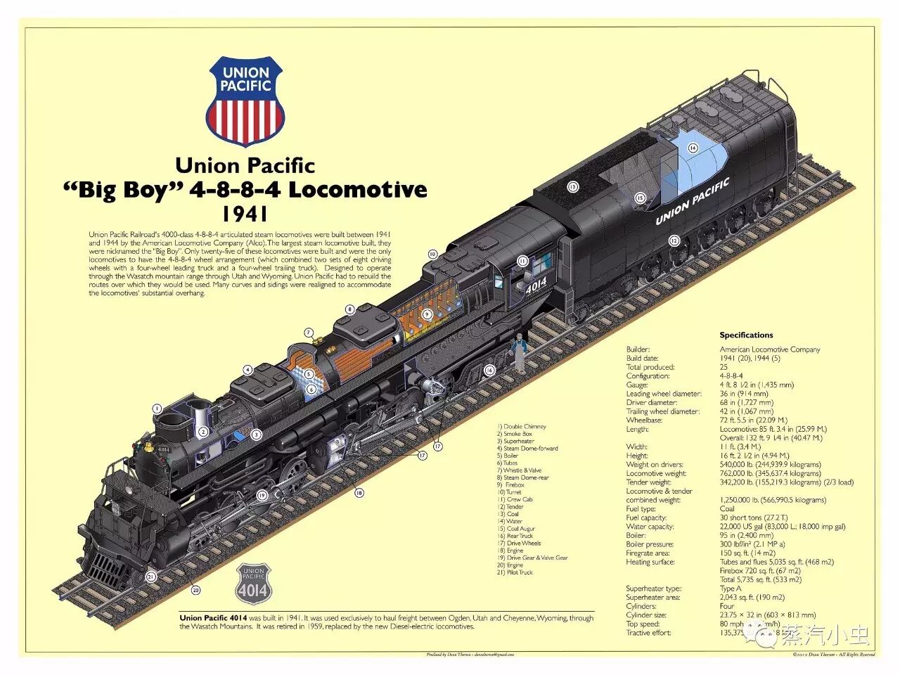 蒸汽小虫来点废话科普一下大男孩蒸汽机车这个大家伙 大男孩是美国机车公司4000级,4-8-8-4铰接式蒸汽机车,建于1941年至1944年之间(总产量25台),由联合太平洋铁路公司运营至1959年便悉数退出运营。大男孩机车是唯一使用4-8-8-4式车轮布置的机车,包括一组四轮牵引车,两套八驱动轮和一个四轮拖车,以支撑其硕大的锅炉系统。 大男孩被用来运营联合太平洋铁路干线,其大体位置位于犹他州,怀俄明州和奥格登之间的Wasatch范围内,当时的运行速度一般保持在60英里/小时,事实上,它可以以每小时80英里(130公里)的速度行驶。列车载重3200吨。 大男孩被描绘成像Mallet一样。它们的设计稳定性为每小时60英里,它们的运行速度通常低于货运服务的速度。峰值功率达到35 mph(56 kph),其最佳牵引力大约是10 mph(16 kph)。大男孩机车都被设计成煤炭动力,一般采用来自怀俄明州联合太平洋公司的低质烟煤。比较特殊的是UP4005号机车,后来经过改造采用重油做燃料。 蒸汽小虫以前曾经提及过(还不快去看看蒸汽小虫以前写的文章 蒸汽小虫要正式引入Alberto Celot先生的作品啦 首先是建模哟,当然Alberto Celot先生的建模没有上图精细,3D建模基本会确立一个模型的构架,避免模型的零件制作和装配产生冲突性的错误。 经过18个月的努力,终于完成了底盘和车轮的布置,制作者首先把这个系统送到了当地的Gauge 5,也就是127mm轨距的铁路进行测试,保证其轮距标准不出问题,也测试了一下理论转弯半径是否靠谱。 蒸汽机车的前导轮虽然没有动力,却对后面的驱动轮有很大的方向导引性,在以较高速通过转弯轨道时对机车在轨运行的安全提高保证。上图是该模型的前导轮照片。 大男孩的后导轮一共有2对轮子,该后导轮底盘的设计显得很稳重。蒸汽小虫曾经仔细查看过后导轮底盘的结构图纸,对金属模型DIY来说,设计铸造出这个后导轮底盘来也是蛮辛苦的。 接着说锅炉,Alberto Celot先生托人定做的锅炉是用钢板和钢管焊接而成的(氩弧焊焊接),重达74公斤 上图是模型所用的尾气烟囱,大男孩的尾气系统其实蛮复杂的,两个烟囱本应分别用来排放前后两组气缸的尾气(模型中合并了),实际的大男孩蒸汽机车还在机车左侧设置了一个锅炉注水装置,可以由尾气加压实现对锅炉的注水,但是这个装置非常复杂,就被省略了(有兴趣深入了解的读者可以去考察一下)。 上图是大男孩模型所用的变向系统,采用高压空气气动换向。 上图是机车转向系统的控制阀。 上图是制作者购买的小火车锅炉炉门配件,该配件功能上能模拟气动开闭炉门。 上图是前面两组气缸链接吹风烟囱的尾气管道,因为锅炉和烟箱是是固定后组驱动轮底盘上面的,因此该尾气管道必须有两个自由旋转关节和一个可伸缩的穿管才能保证车体顺利转弯(本图只给出其部分结构)。 上图是模型采用的迷你涡轮发电机,可以依靠高压水蒸气发电,真实功能哟。 上图是模型采用的前组气缸与锅炉链接的蒸汽管道,没办法必须要有关节,要不火车没法转弯 上图是车头灯的模型,是用铜材料钎焊制作的。蒸汽机车的供电系统包括一组实用功能的蒸汽涡轮发电系统和一组备用电池。 上图是前后两组气缸和缸套,想知道怎么做的去翻翻蒸汽小虫的往期文章补习一下 上图是前组气缸所需的蒸汽管道接口,也必须有伸缩自由度。大男孩底盘铰接结构和锅炉位置(锅炉固定在后组底盘,锅炉前端压在前组底盘可滑动)决定了前组气缸无论是进气管道还是出气管道,必须有多个旋转关节和伸缩自由度,蒸汽小虫膜拜中······ 上图是烟箱内部结构,其实这个模型的蒸汽管道是有过热管的,这张图不容易看到。 上图是烟箱的外侧结构,蒸汽小虫拿到大男孩的施工图纸细看,其真实的烟箱是非常复杂的,真实机车烟筒的出口出还安装了一个可由风缸控制开合的烟罩系统,有一组类似制动气缸的设备被安装在烟囱口附近,但是这个在Gauge 5比例的模型中很难实现,在Gauge 7.5的模型中曾经有玩家制作了该烟罩(必须要安装迷你空压机压缩空气才能使用)。 该蒸汽动力机车模型打算采用液化气的动力系统,因此制作者特意把火箱的底部煤灰盘改装成了燃气用的灶口装置,看看这阵势,火候肯定小不了。总的说来如果采用燃气比燃煤有一些好处,首先是比较环保,再者就是从烟囱里吹出的尾气都是水蒸气,这样风向不好吹在驾驶者的脸上,也不会像燃煤系统那样弄一脸煤灰,还有一个好处就是相对于煤炭点火 (未完待续,期待下一期更精彩,欢迎关注蒸汽小虫公众号) (此外蒸汽小虫有从国外购买的完整版大男孩蒸汽机车图纸,想挑战此难度又觉得不是脑袋一时发热的可以找小虫购买) 蒸汽小虫为蒸汽动力机车模型和蒸汽机模型的主题公众号,喜欢更多内容的朋友,请关注我们的公众号。 |