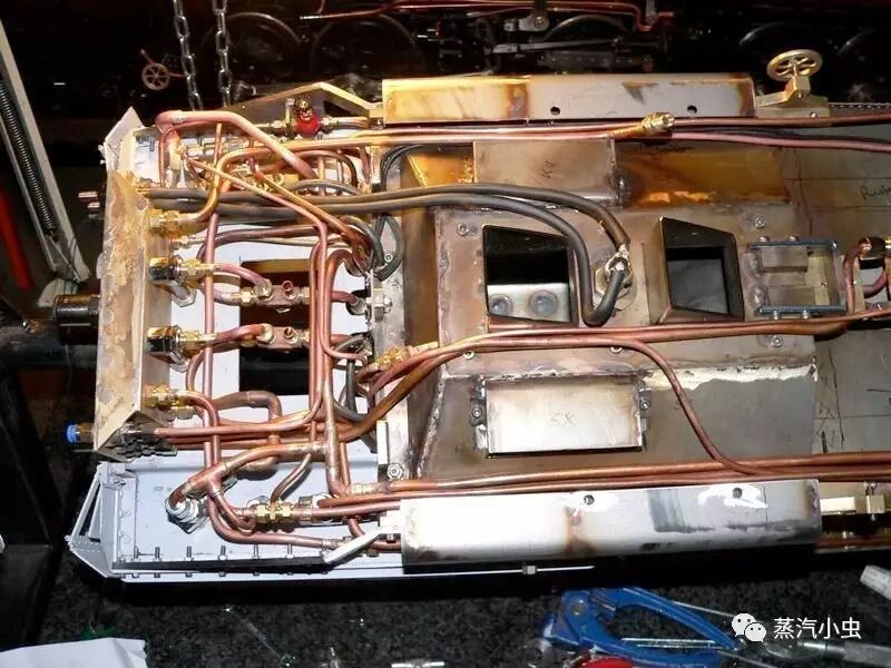 (本文是该意大利玩家Alberto Celot先生制作的G5比例大男孩蒸汽火车模型的续文,有意了解前文的读者可以关注蒸汽小虫的第40篇文章) 蒸汽小虫上一期文章已经展示了这个大男孩蒸汽小火车的底盘和锅炉部分,还有各种零件系统的制作,本期的重点是组装和初步测试。 随着各种丰富细节工作的进展,前组驱动轮的连杆系统,制动系统已经初步完成,Alberto Celot先生开始测试前组驱动轮的运行状态,这种测试一般方法就是用空压泵向气缸中打入高压空气,观察各个连杆和动轮的运行状态,并且测试变向系统和制动系统的靠谱性(该模型采用风缸制动),当然这种测试也是为了实现气缸和连杆机构尽快磨合。 初步测试完成后,制作者开始布管线,图中的细铜管就是整个机车的润滑油线路(线路自动向车轮轴套,铰接轴承,以及蒸汽气缸中注油),大男孩真实机车的润滑油箱与动轮系统之间采用链条传动,这样的系统对于G5比例模型非常难以实现,制作者只好把润滑油箱放在本应该放置空压泵管道空冷栅的位置。 进一步的工作就是把锅炉,烟箱与气缸通过管道链接起来,这个在大男孩这样的铰接式四缸驱动机车上可是很麻烦的一个工作。 然后制作者对操作面板进行了布置,这种布置包括了整个机车的控制系统,包括锅炉的注水与排水,蒸汽管道的输入控制,气缸排水阀,各种压力表,水位计的测控,制动系统的控制阀,涡轮机控制系统,汽笛控制阀,空压泵控制,车头灯和电动泵的电路控制,还有锅炉煤气管道和点火装置的控制等等等等。这么多操作阀门摆在蒸汽小虫面前,小虫觉得开这个小火车跟开真的蒸汽机车没啥区别了,好吧每个蒸汽小火车玩家都要拿火车驾照上路 随着各种细节的进一步实现,整个车头部分已经呼之欲出。图中显示的司机室外壳结构,包括可以拉动的小窗户,萌态迷你啊有木有。 看看机车驾驶室底部的各种管路布置,是不是很牛气 至此车头差不多完成了,功能也可以独立了,下一步,开炉测试! 制作者将锅炉与底盘和蒸汽管道,尾气管道分离,单独测试锅炉功能,锅炉的测试是在安全背景下测试其耐压性能,同时测试安全阀的泄压靠谱性(锅炉点火前首先进行了耐压测试,锅炉工作压力是6公斤,在点火之前进行过常温水压测试,水压45公斤保持24小时)。 图示其锅炉点火测试过程照片,锅炉燃气采用电火花点火,这种石油液化气燃料相对于煤炭省去了大量的开炉点火时间,而且在小火车的锅炉遇到需要紧急停炉状况时,比煤炭的停炉步骤简单很多。 制作者Alberto Celot先生的首次测试发现其过热蒸汽的温度达到了270摄氏度,无论是这个温度还是这个温度对应的压力对气缸管道的密封件来说都有点超强度服役,因此制作者将燃气管道的最大输气量做了调整,保证锅炉输出的过热蒸汽最高不超过240摄氏度。 说真的,锅炉测试事关以后的运行安全,玩家们都要耐心仔细完成测试工作,具体的通用测试方法和细节,蒸汽小虫会在以后的文章中给出。 (未完待续,期待下一期更精彩,欢迎关注蒸汽小虫公众号,喜欢蒸汽小虫文章的朋友,欢迎将此文推送到朋友圈,吸引更多的新朋友关注我们的公众号) (此外蒸汽小虫有从国外购买的完整版大男孩蒸汽机车的图纸,想挑战此难度又觉得不是脑袋一时发热的可以找小虫购买) 蒸汽小虫为蒸汽动力机车模型和蒸汽机模型的主题公众号,喜欢更多内容的朋友,请关注我们的公众号。 网络转载声明: 蒸汽小虫公众号文章皆为原创内容,任何形式的网络转载必须经过本公众号授权,且任何形式的文字或图片转载须在开篇显眼位置作如下声明: “本文章转载自蒸汽小火车模型论坛(zqxhc.com)和 蒸汽小虫微信公众号(ID: steamworm)”; 其他事项: *转载请附带本公众号二维码; *转载不得擅自改编文章内容; *本公众号对其文章的转载使用有授权和取消权利。 |
